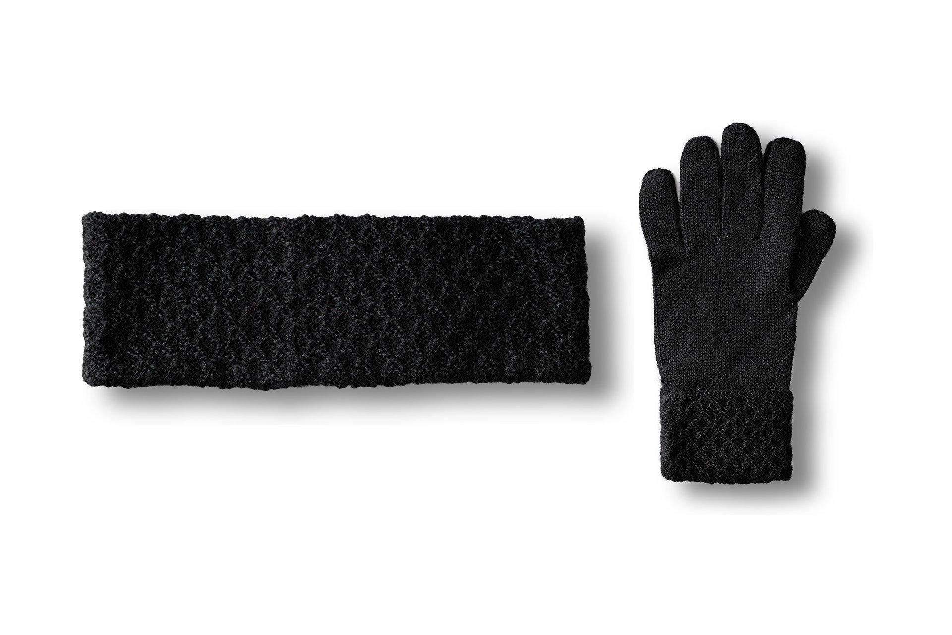 Komplet Vilma združuje rokavice in trak iz 100 % alpaka volne, ki zagotavljata izjemno mehkobo, toploto in brezčasen stil. Elegantni pleteni detajli dodajo prefinjen videz, enobarvna zasnova pa omogoča preprosto kombiniranje z vsako garderobo.
